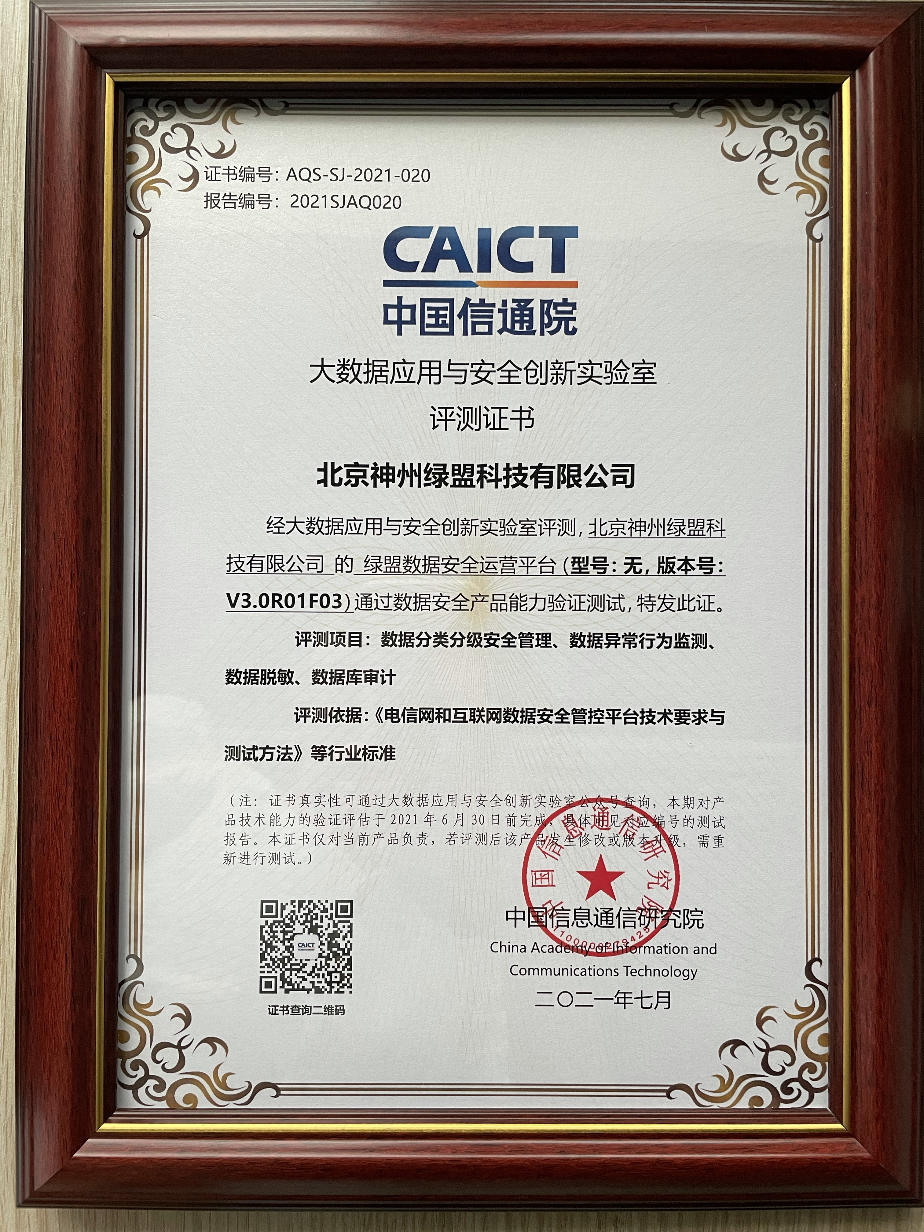 7ÔÂ14ÈÕ£¬ÖйúÐÅϢͨѶÑо¿Ôº£¨ÒÔϼò³Æ“ÖйúÐÅͨԺ”£©½ÒÏþ“׿ÐÅ´óÊý¾ÝÍýÏë”-Êý¾ÝÇå¾²Àà²úÆ·ÄÜÁ¦ÑéÖ¤²âÊÔÖ¤Êé¡£¾ÅÓÎÀϸçÊý¾ÝÇå¾²ÔËӪƽ̨˳Ëìͨ¹ýÊý¾Ý·ÖÀà·Ö¼¶Çå¾²ÖÎÀí¡¢Êý¾ÝÒì³£ÐÐΪ¼à²â¡¢Êý¾ÝÍÑÃô¡¢Êý¾Ý¿âÉó¼ÆËÄÏЧÆÀ²â£¬²¢»ñµÃÆÀ²âÖ¤Êé¡£